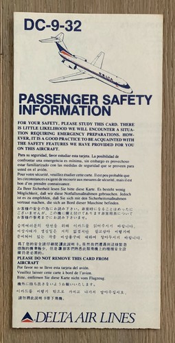 Delta Air Lines Dc 9 32 Safety Card 11 88 Ebay
